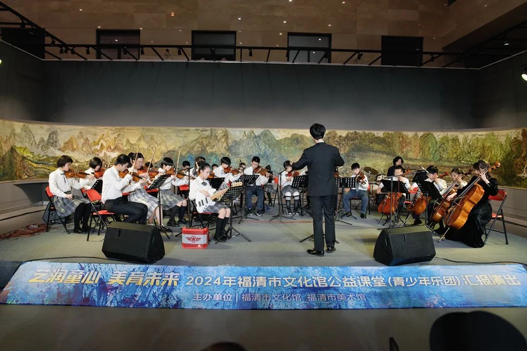 2024年12月14日晚,福清市美术馆展厅灯火辉煌,掌声雷动,福清市文化馆公益课堂(青少年乐团)汇报演出在这里精彩上演并圆满落幕。此次演出以“艺润童心,美育未来”为主题,不仅展示了青少年室内乐团成员们的艺术成果,更彰显了福清市文化馆在青少年艺术教育领域的卓越成就。