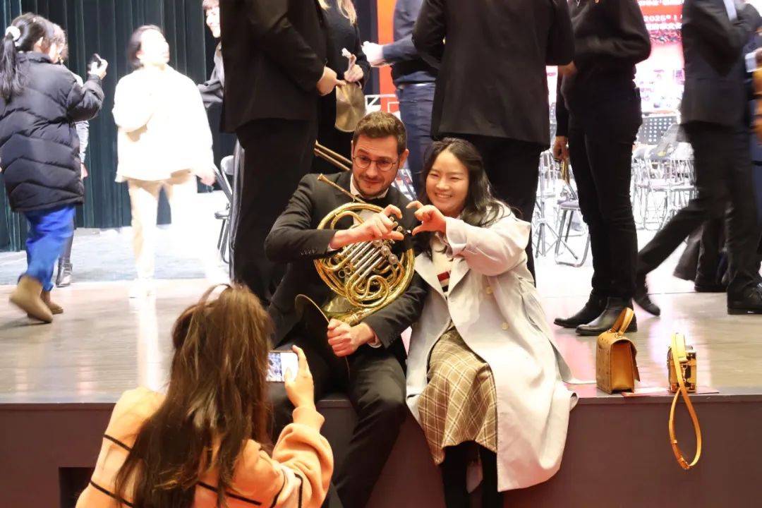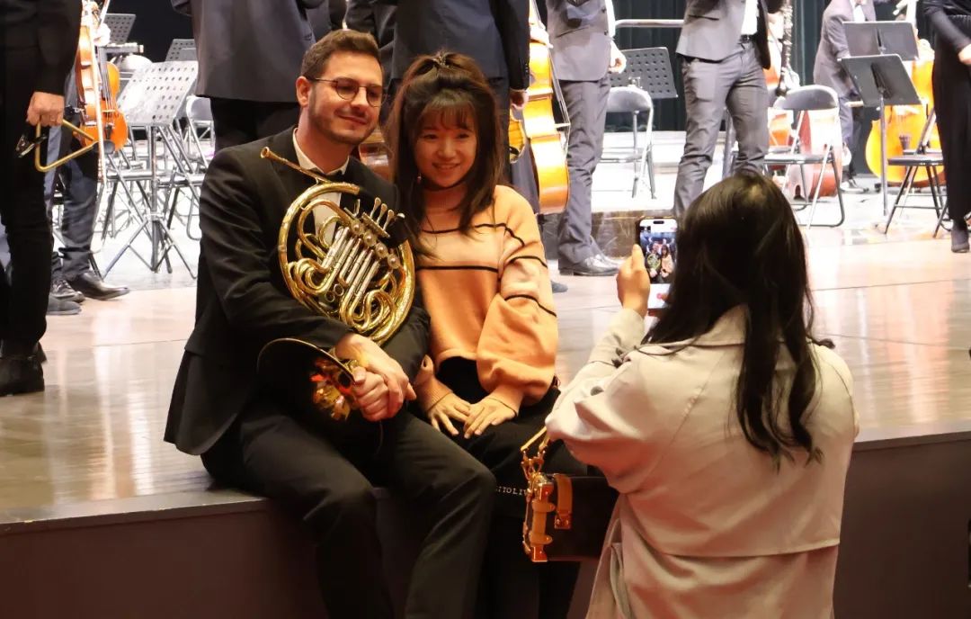 精彩的演出让听众们意犹未尽,纷纷与乐团合影留念,演出结束后,乐团成员们还为现场观众献上了一曲《生日快乐》歌,音乐会在现场的欢声笑语中落下帷幕。