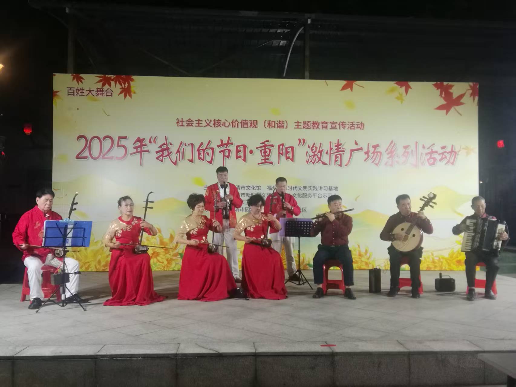 在重阳佳节来临之际,为大力弘扬中华民族尊老、敬老、爱老、助老的传统美德,营造祥和温馨的节日氛围,福清市文化馆精心组织文艺志愿者与党员志愿者,于全市范围内开展了一系列形式多样、内容丰富的主题文艺活动,将节日的祝福与社会的关爱实实在在地送到了长辈们的心坎上。