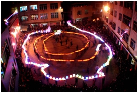 节目简介:瑟江村舞板凳龙活动,始创于元至正年间,编修族谱后开始一条龙游行活动。至明嘉靖年间变成三条龙游行活动。至清道光年间又增加一条龙。随着村子的发展,按着“一灯一丁”的传统,清朝末年,村里人口发展壮大,形成六条龙的规模。板凳龙巡游于每年正月十二至十六日晚举行。板凳龙先从各自然点起行,到所有自然点的主干道,围绕整个乡村进行舞龙,再到瑟江翁氏祠堂“穿龙柱”,接着到祠堂前面的埕地“打龙围”,最后又绕着乡村回到各自然点。