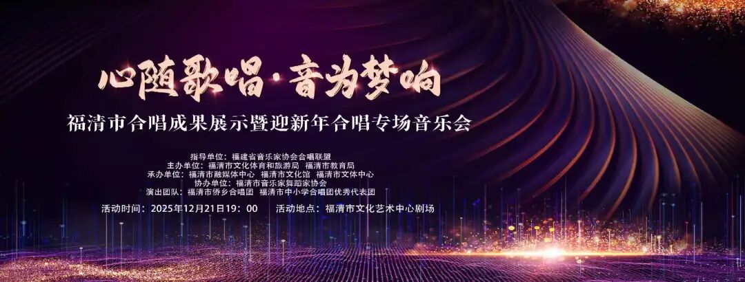 当玉融大地的冬韵邂逅悠扬和声,当逐梦的热忱碰撞新年的期许,一场点亮岁末的合唱盛宴即将启幕!12月21日晚,“心随歌唱·音为梦响”福清市合唱成果展示暨迎新年合唱专场音乐会将在福清市文化艺术中心剧场温情开唱,福清市侨乡合唱团携手八支福清市中小学合唱优秀代表团用最纯粹的人声为岁末年初镌刻下最动人的文化印记!