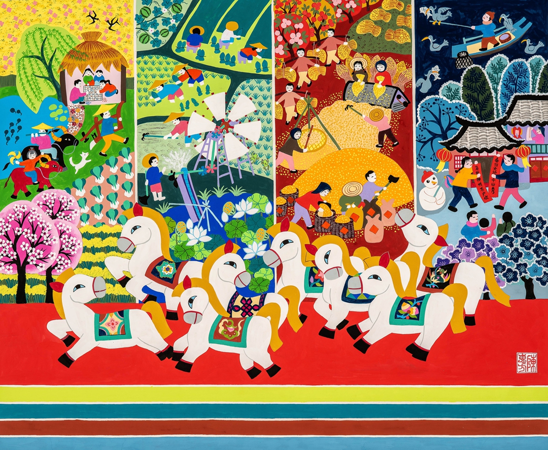 何忠、陈红 瑞纹骏影踏新春 北京 297cm×420cm