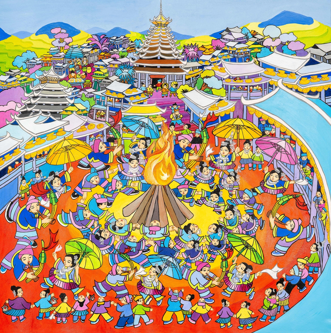 吴凡宇 篝火踩堂迎新春 广西 110*110